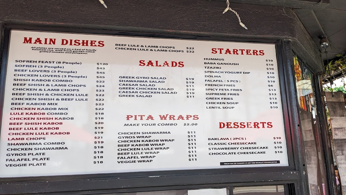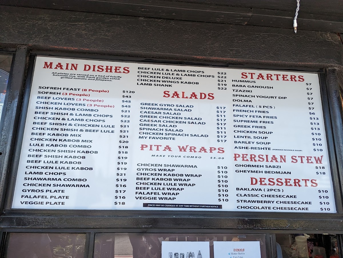 - A La Carte: Enjoy skewers like the Beef Lule and Chicken Shish Kabob, each at $12, perfect for sharing or a quick bite.